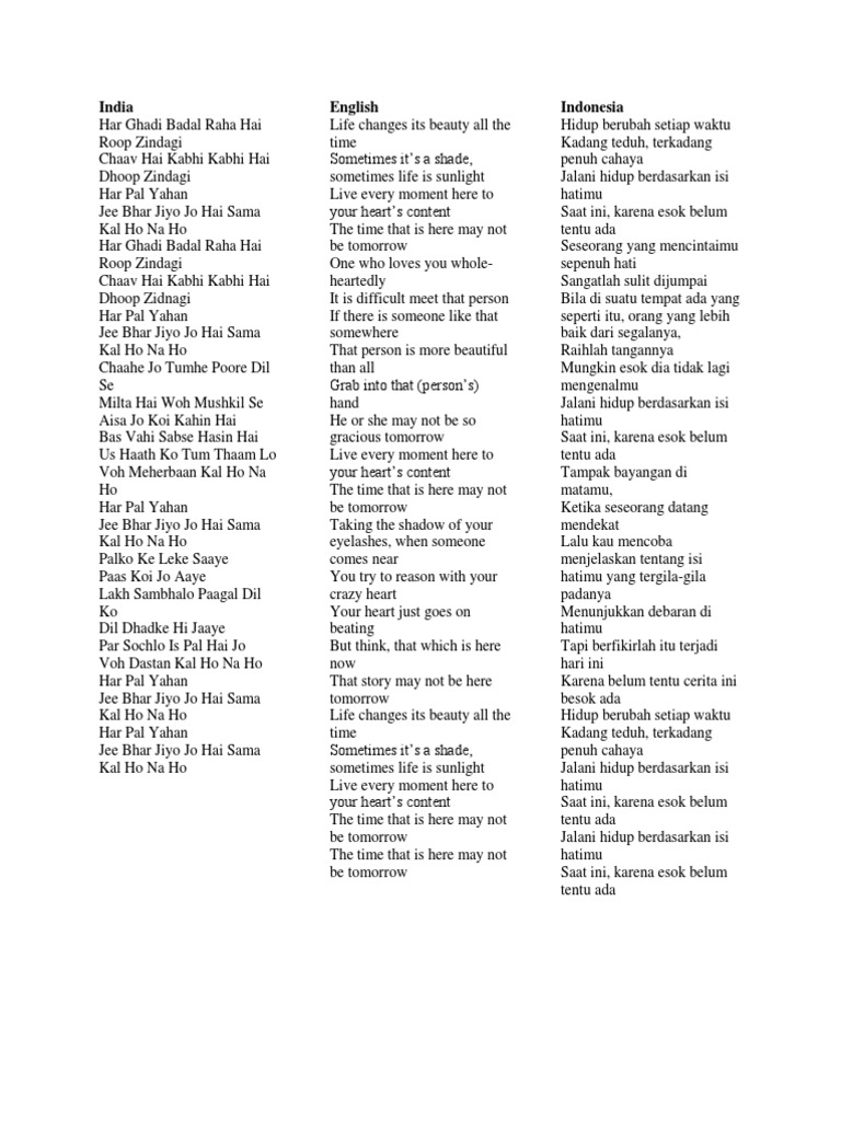 Lirik Lagu India Kalhonaho : Kalhonaho terbaru gratis dan mudah dinikmati. Lirik Lagu India Kalhonaho / Download lagu india kalhonaho mp3 dapat kamu download secara gratis di metrolagu.